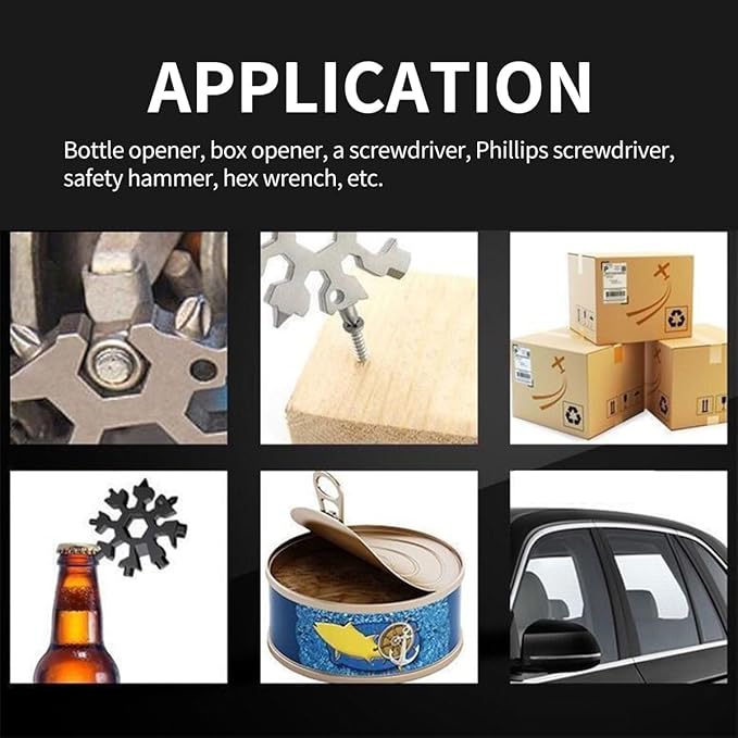 The Lifespace 18-in-1 Snowflake Multi-Tool combines functionality, durability, and portability in a unique, stylish design. Its anti-corrosion stainless steel construction ensures reliability in wet environments, making it perfect for boating, kayaking, or any outdoor adventure. Whether you’re tightening screws, cutting ropes, or opening bottles, this multi-tool is your go-to solution for tasks big and small.