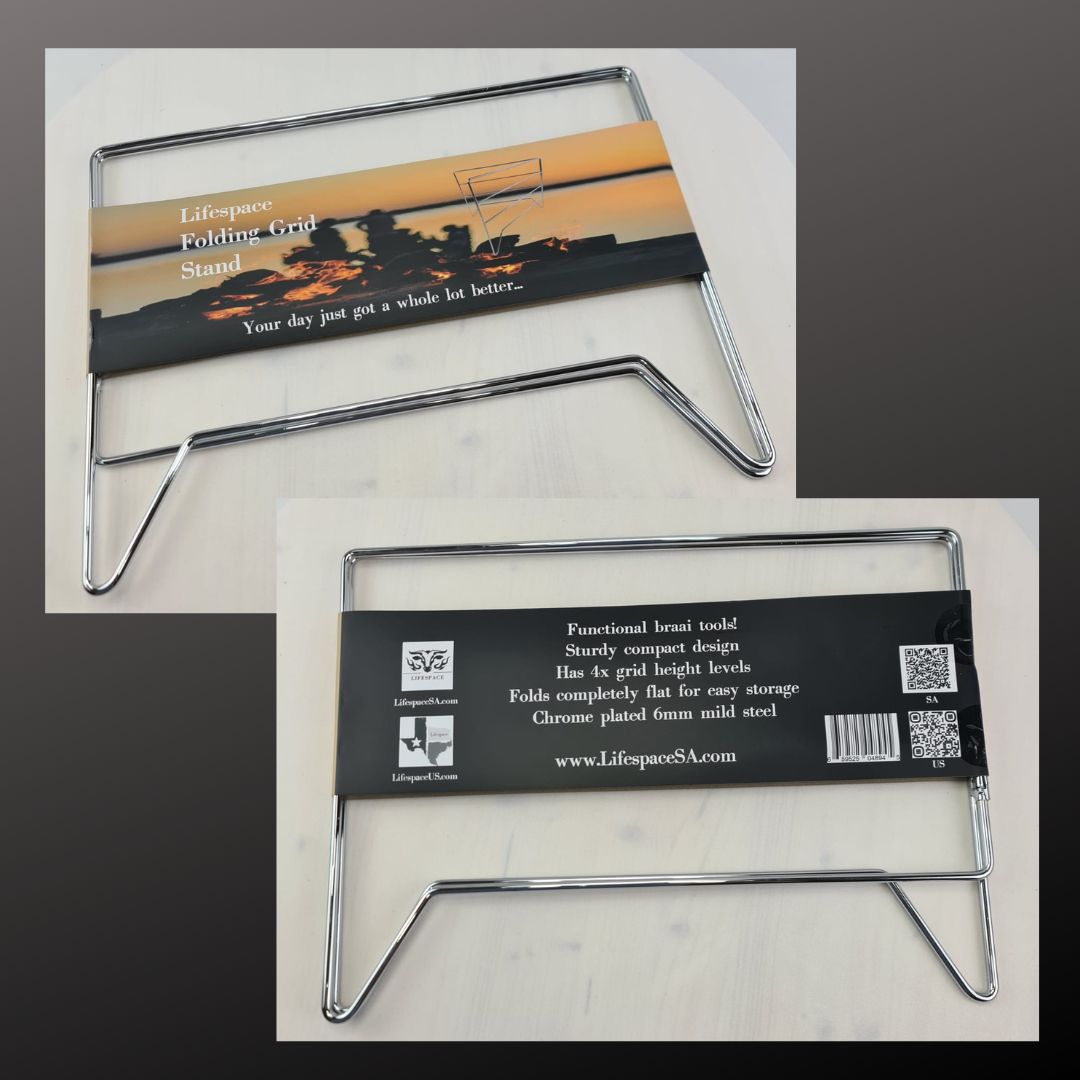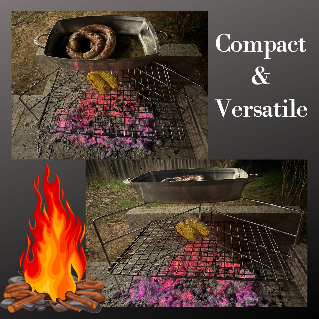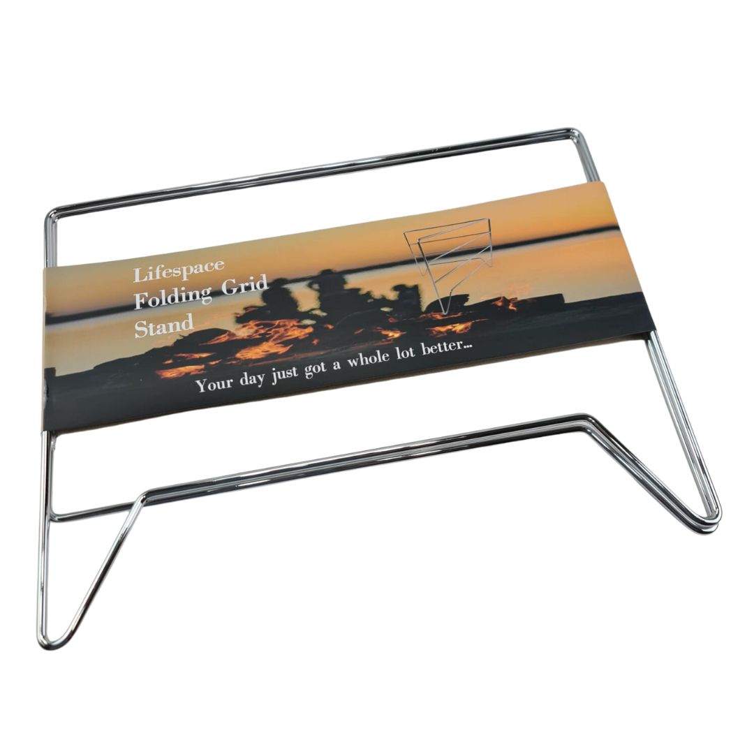 Introducing the Lifespace Folding Grid Stand in Chrome – Your Ultimate Companion for Campfire Cooking Adventures!