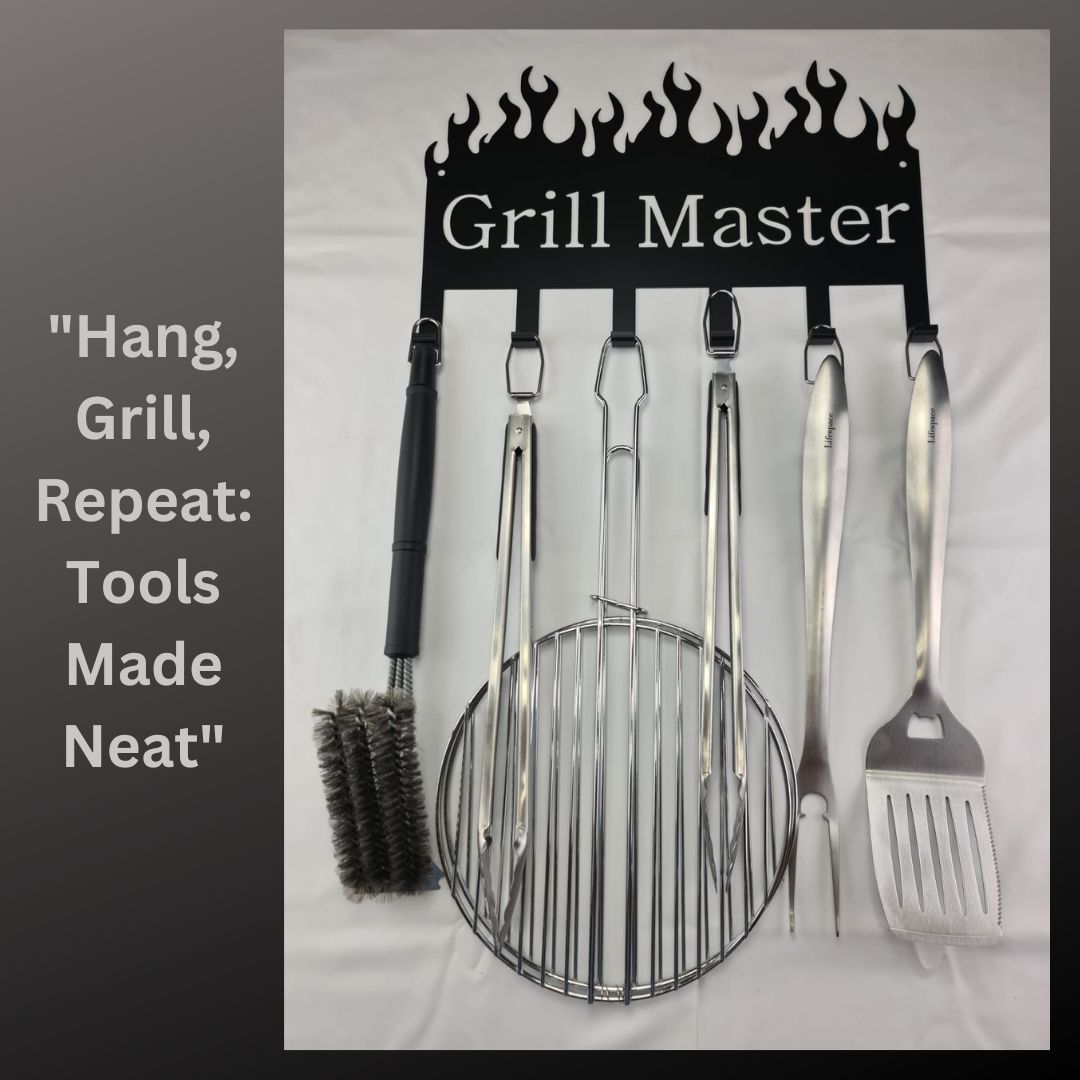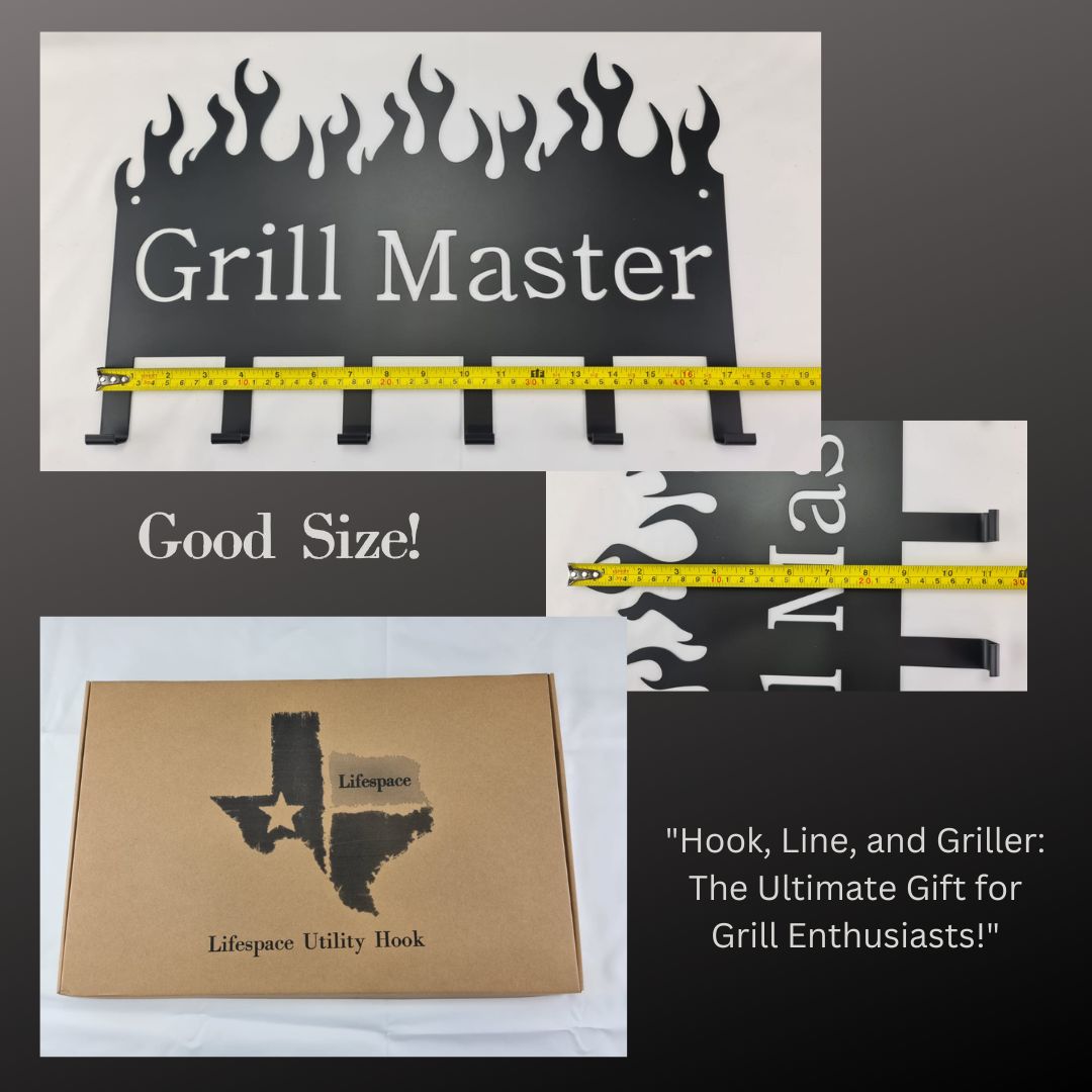Perfect Size & Material: Measuring 18in x 8.85in x 0.05in, this rack is designed for optimal functionality. The six hooks provide ample space for your tongs, spatula, brush, grill knife, and other essentials, ensuring everything you need is within easy reach.