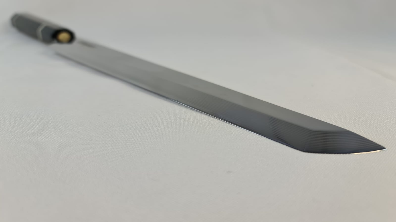 Premium Construction - Crafted from high-quality materials, this knife features a 10.63" stainless-steel blade made of 9Cr14MoV steel, known for its durability and sharpness retention. The handle is meticulously crafted from ebony wood, copper, and ox horn, offering both elegance and functionality. The knife has a hardness rating of 60-58HRC and a sharpness lever rating of 8-11N. The blade edge angle is 9 to 12 degrees per side.