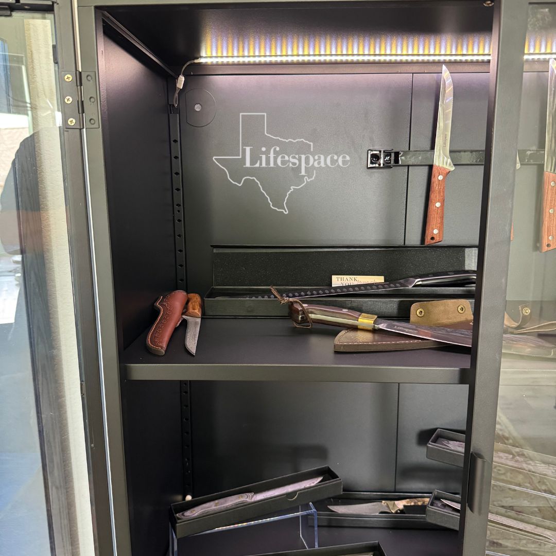 Ample Storage for Premium Blades - Dimensions: 63”H x 31.5”W x 15.75”D. Features 4-tier storage with 120 lbs capacity per tier. Three adjustable shelves allow customizable space for showcasing Lifespace knives and cleavers in a retail environment.