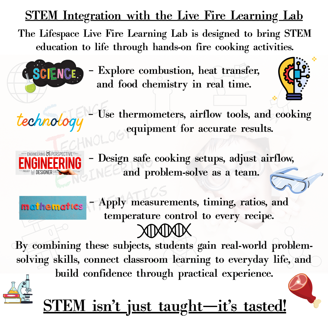 The Lifespace Live Fire Learning Lab is not just about cooking—it is about empowering the next generation with real skills, curiosity, and respect for fire. Whether used in schools, after-school programs, camps, or community workshops, this Lab provides an engaging and educational platform where learning truly comes alive through fire.