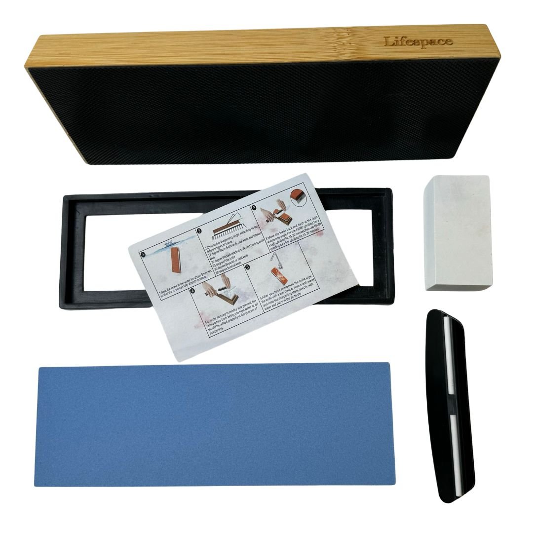 Premium Sharpening Kit: The Lifespace knife sharpening kit includes a dual-sided 1000/3000 grit sharpening stone, a handcrafted bamboo non-slip base to securely hold the waterstone during sharpening, and an angle guide to maintain the correct sharpening angle. The kit also comes with a user manual suitable for all skill levels and a bonus smaller stone for sharpening larger blades.