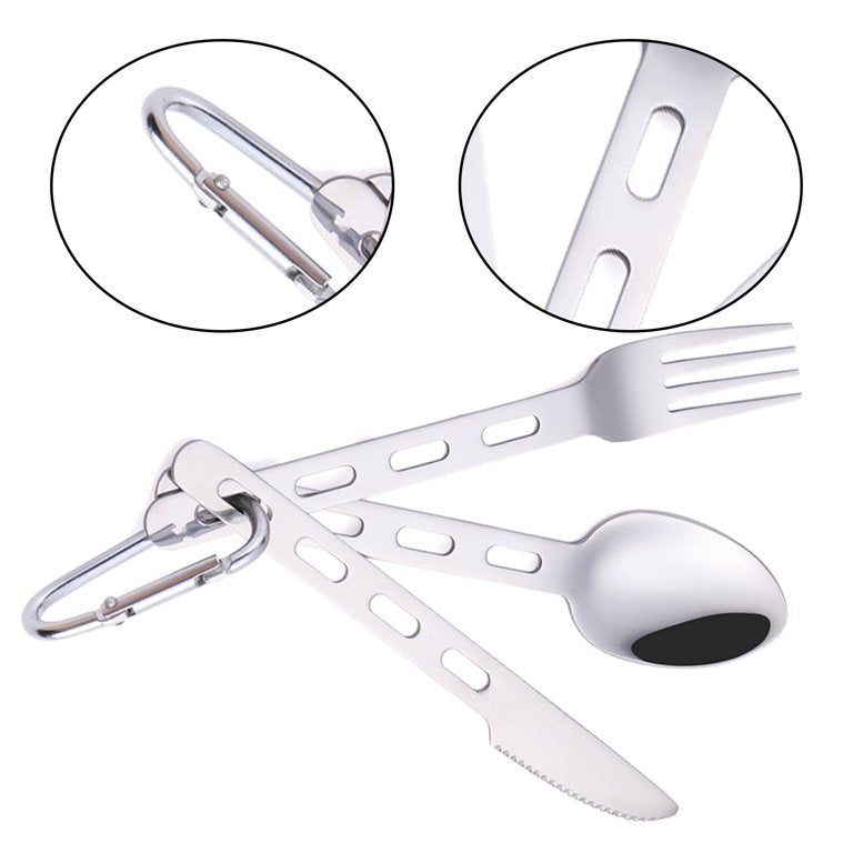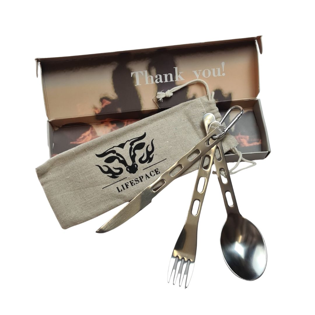 Lifespace S/S Camping Fishing Hiking Utility Cutlery Set with Bag & Carabiner