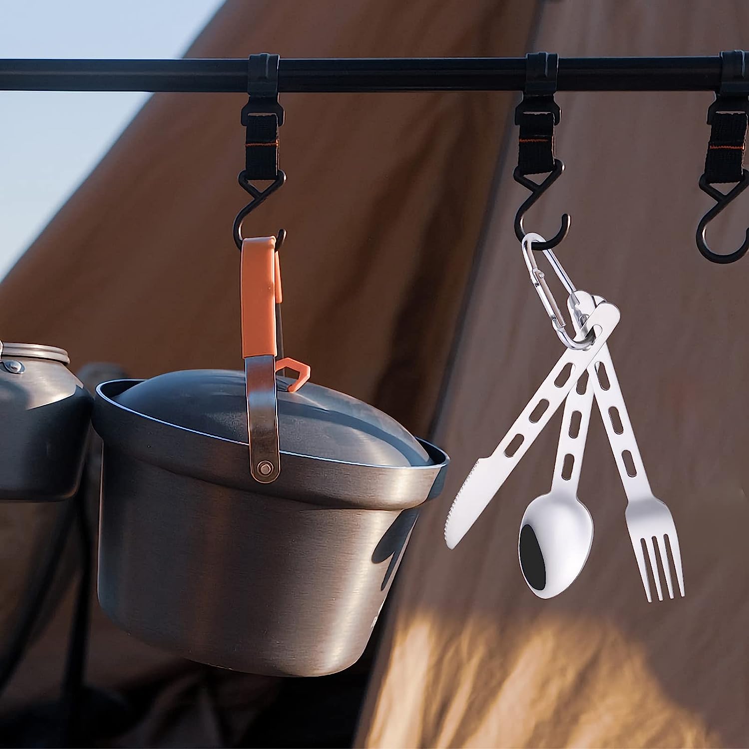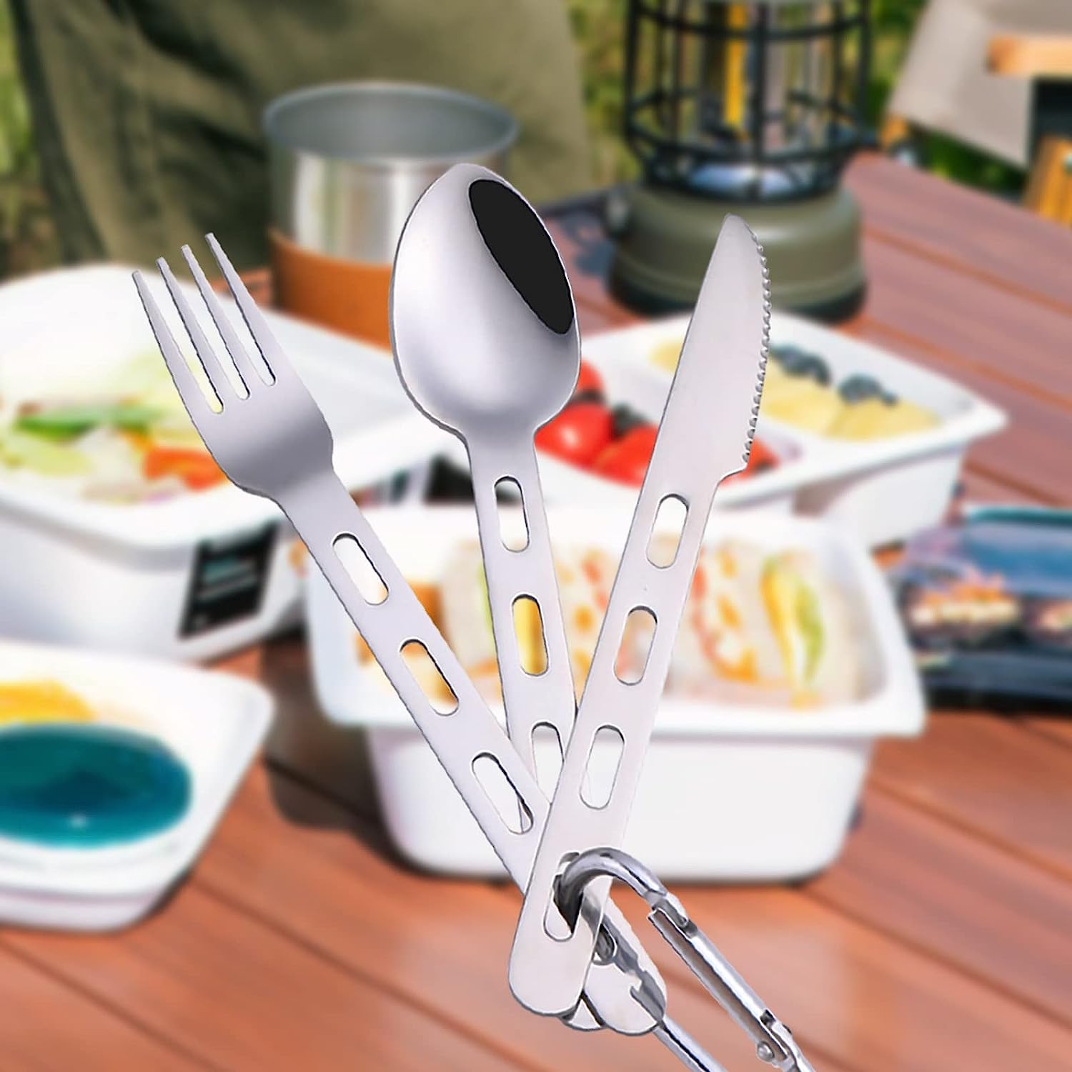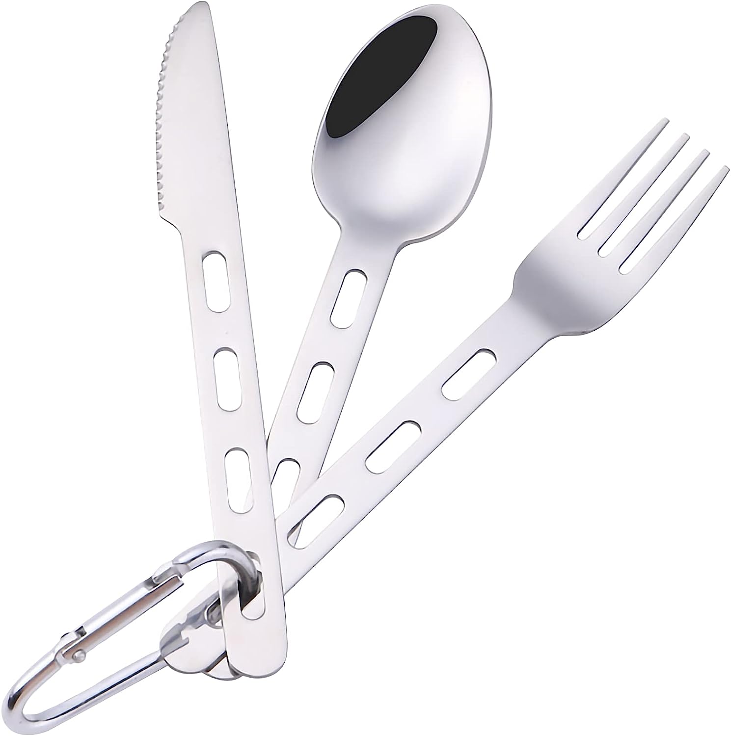 Easy to Carry - The Lifespace outdoor cutlery set stacks together so it's easy to carry when hiking, fishing or camping. Simply hook the carabiner onto a backpack or cooler bag.