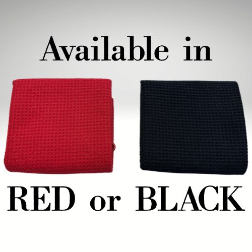 Texas Barbecue Black or Red Waffle 380gsm Microfibre BBQ / Kitchen Towel with Matching Color Carabiner