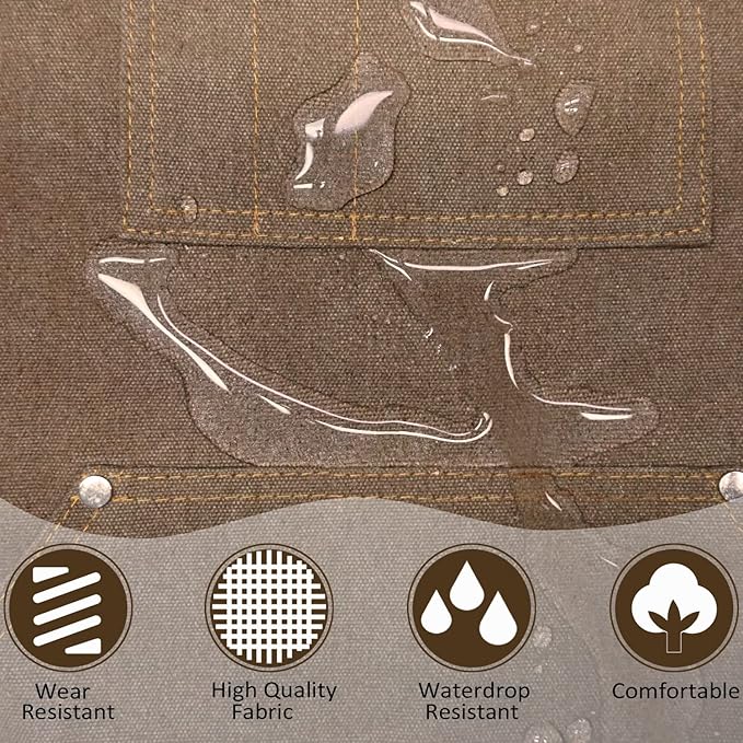 Premium Wax Canvas Material: Crafted from thick, water-resistant waxed canvas, this apron is tougher and more durable than traditional options, keeping grease, dirt, and sawdust off your clothes.