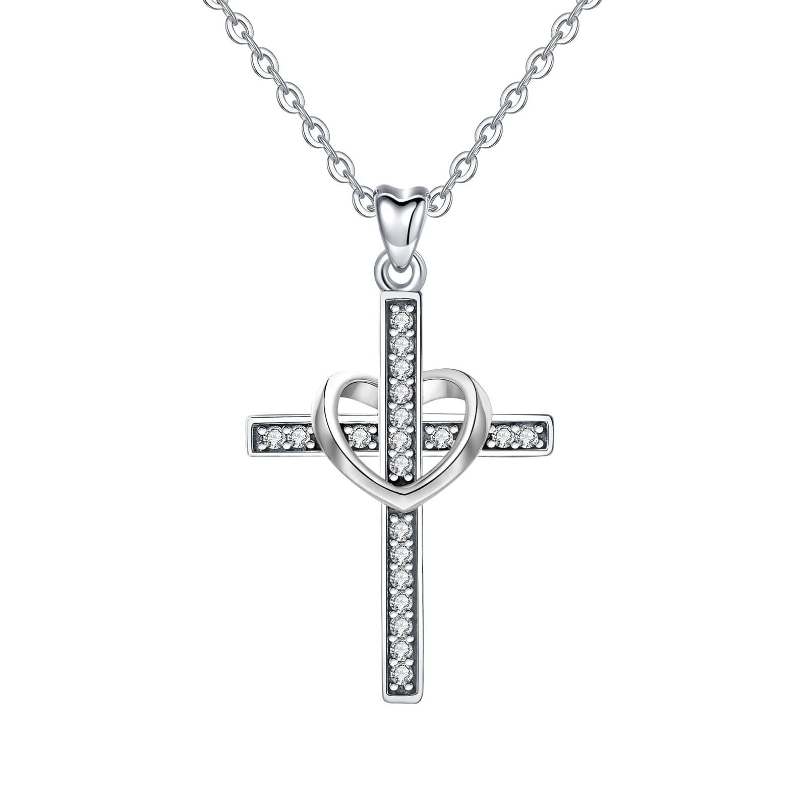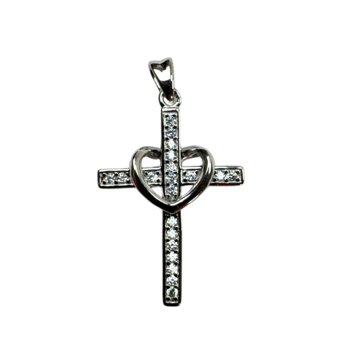This beautifully crafted 925 sterling silver cross pendant features an open heart intertwined at the center, gracefully wrapping around the cross beams to symbolize God’s boundless love (1 John 4:16 – “God is love”). The beams are elegantly channel-set with sparkling cubic zirconia stones, creating a continuous line of brilliance.