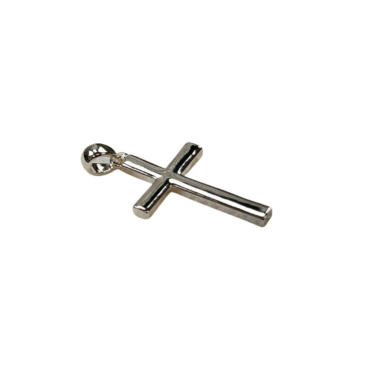 This classic silver-plated cross pendant showcases a clean, minimalist design with smooth, rounded edges and a high-polish finish that creates a sleek, reflective shine. Its understated beauty emphasizes the pure symbolism of the cross, representing faith, hope, sacrifice, and redemption without the need for additional embellishments.