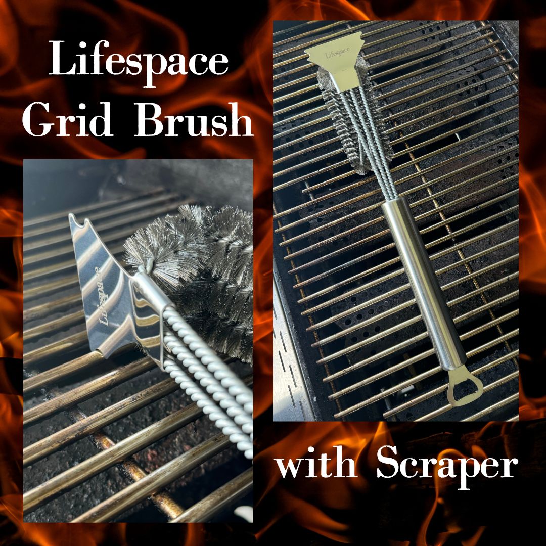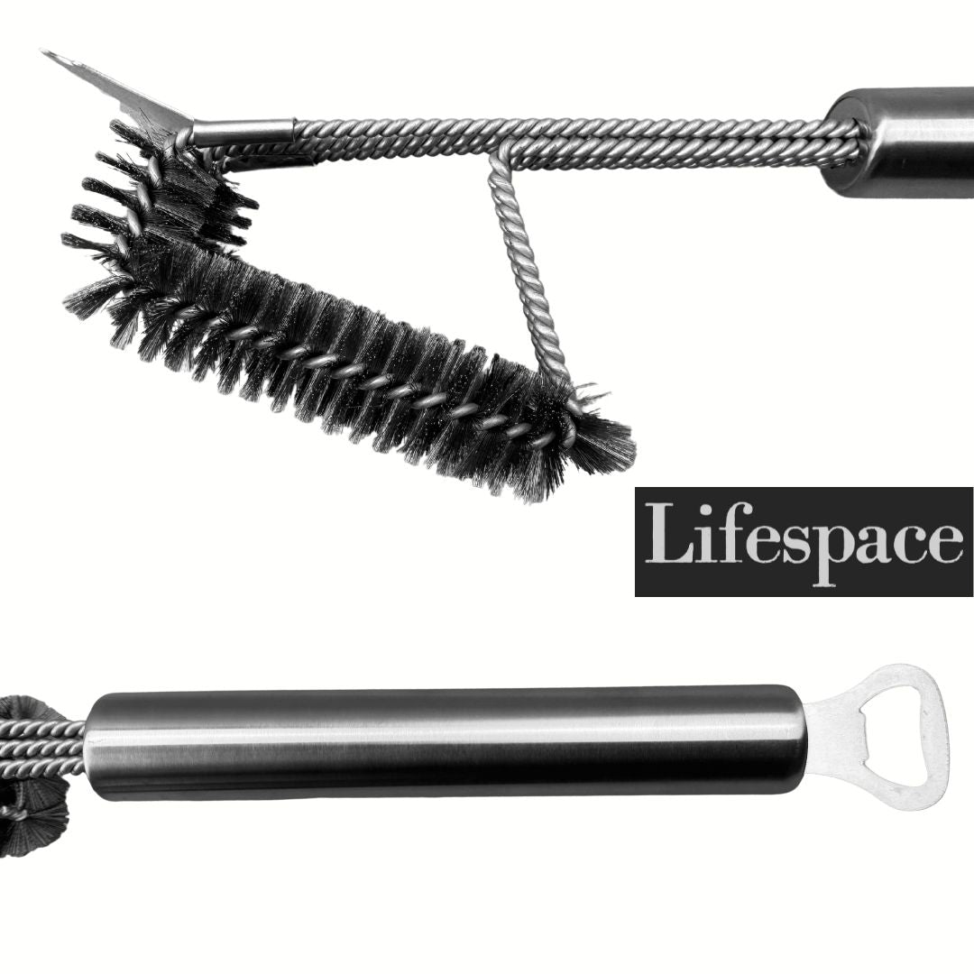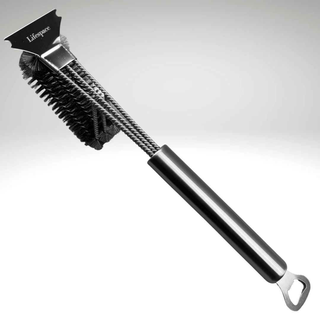 Elevate your grilling experience with the Lifespace 17" Grid Cleaning Brush, complete with a Scraper and Bottle Opener.