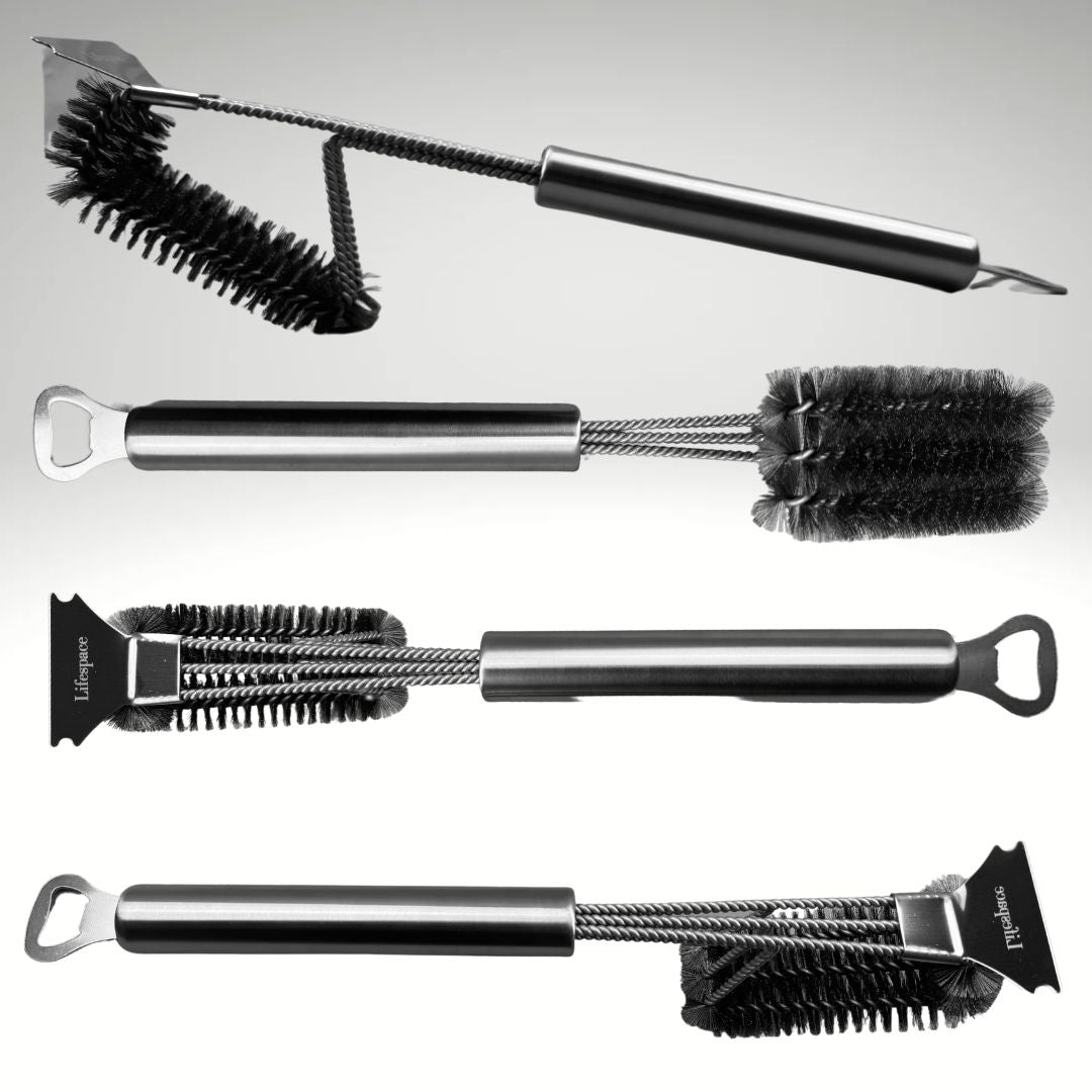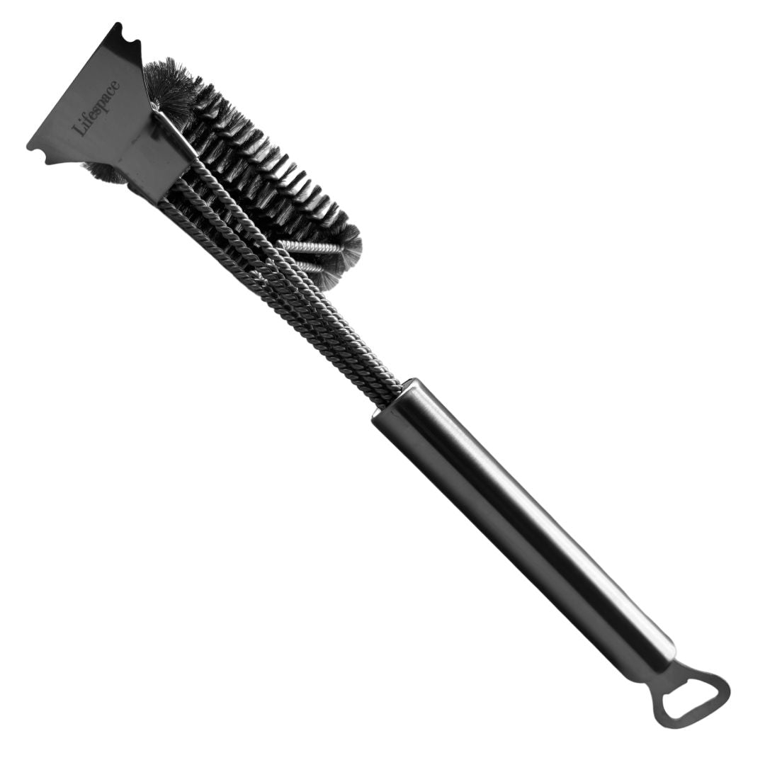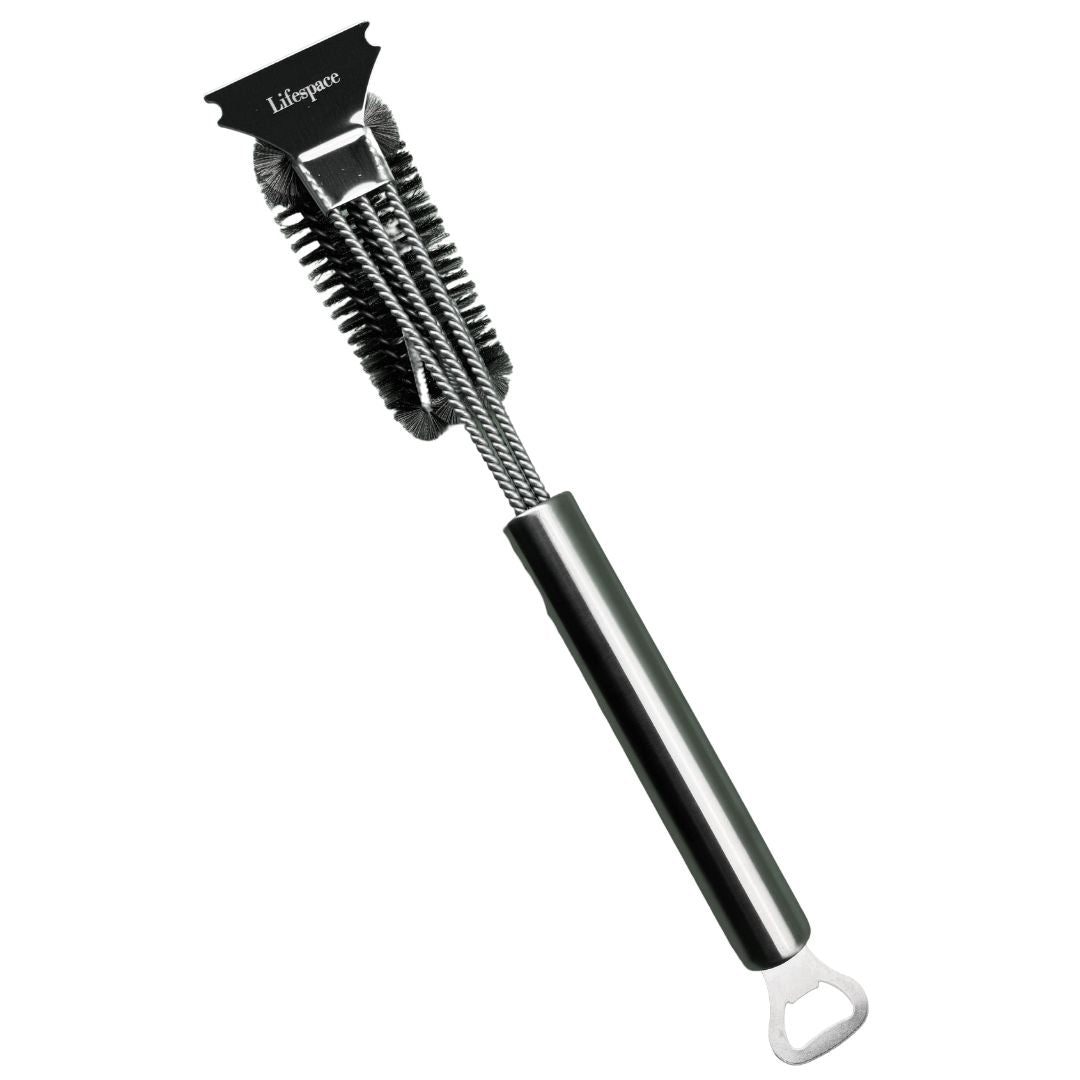 Elevate your grilling experience with the Lifespace 17" Grid Cleaning Brush, complete with a Scraper and Bottle Opener.