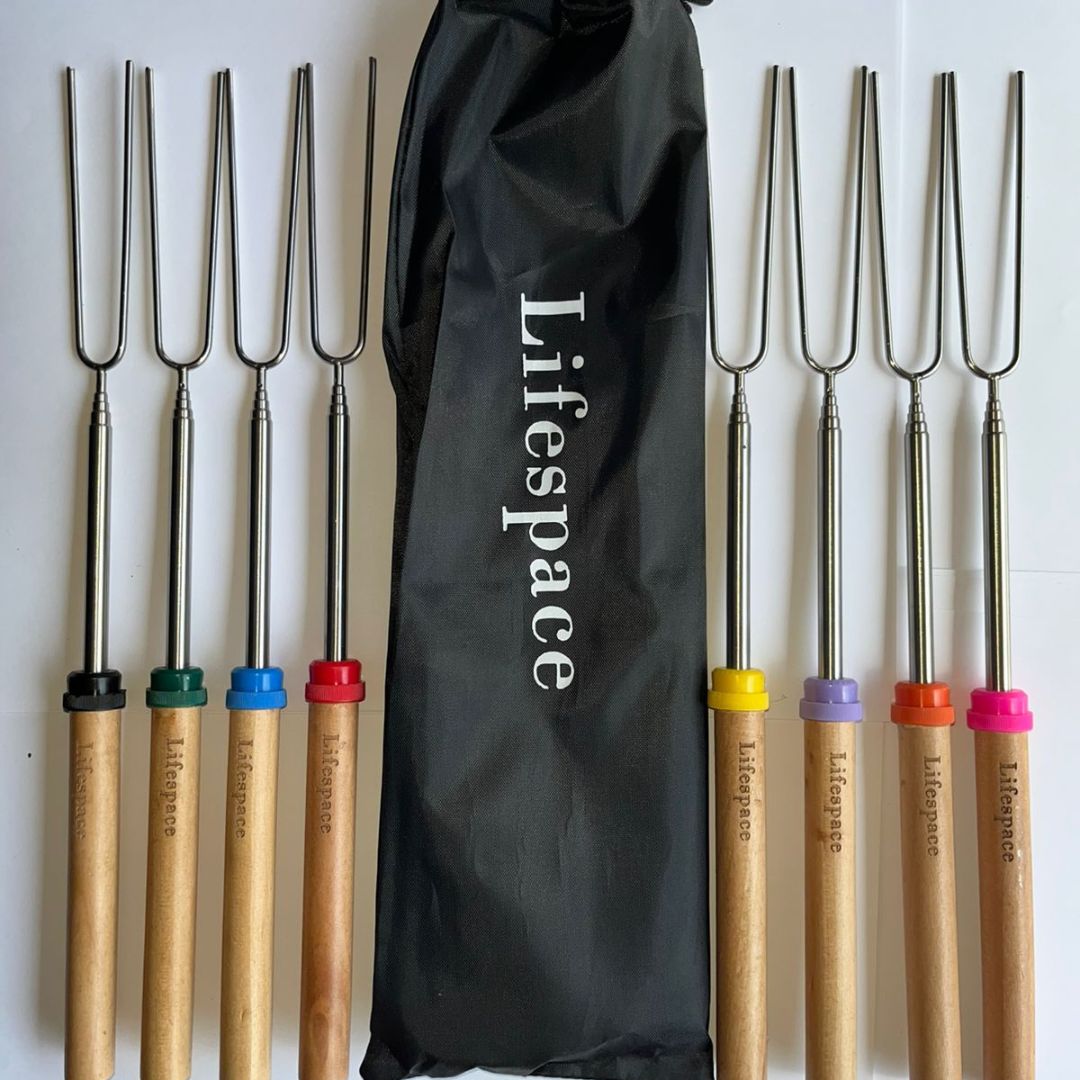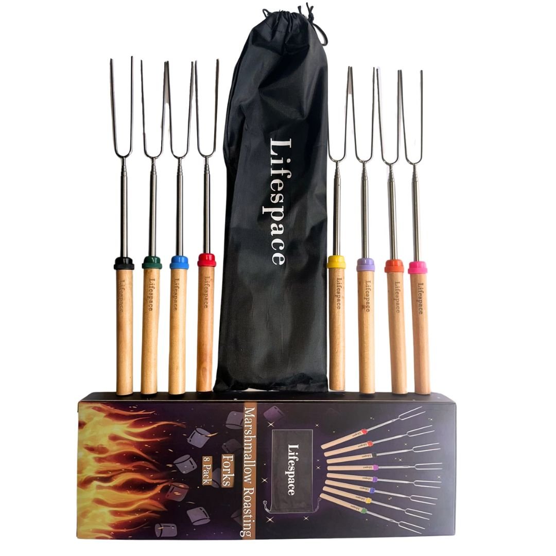 Lifespace Telescopic Marshmallow Roasting Forks with Wooden Handles.