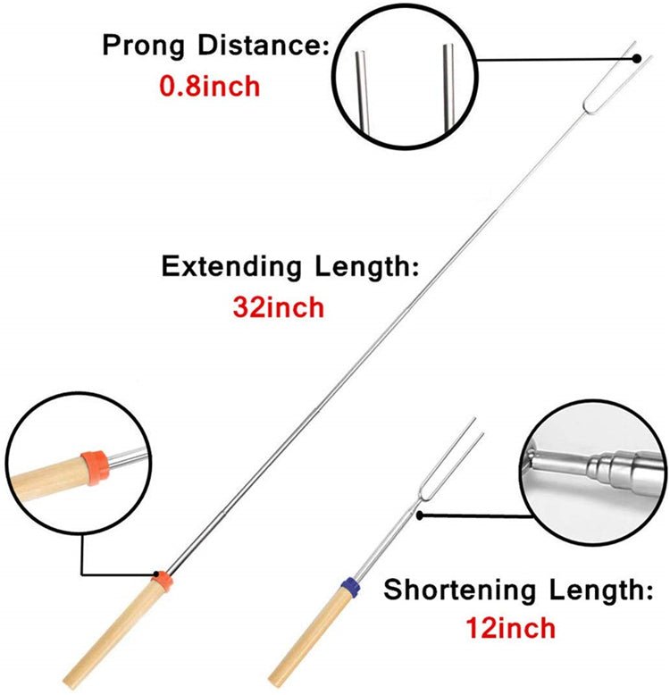 Versatile roasting forks - Our telescoping marshmallow forks come with a free storage bag, so you can easily take them with you on your holiday for around the campfire. Cleaning the roasting forks is very easy too! You just need to put the ends in a glass of warm soapy water for a few minutes and wipe them clean.