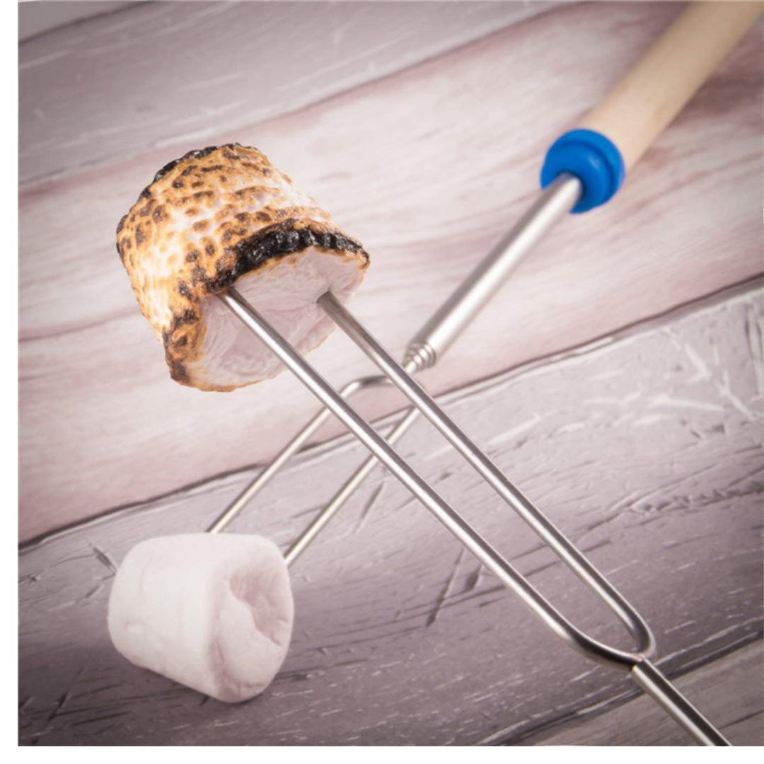 Easy to use and safer for the kids - Each fork has two non-sharp prongs so you can easily hold marshmallows, hot dogs, or veggies without the food spinning and without sticking yourself. Rotating the fork axle at a flick of your fingers prevents marshmallows, hot dogs, and sausages from uneven cooking.