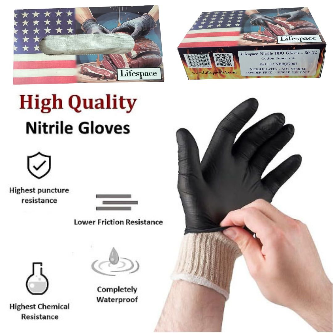 Lifespace Nitrile BBQ Gloves with Cotton Inner