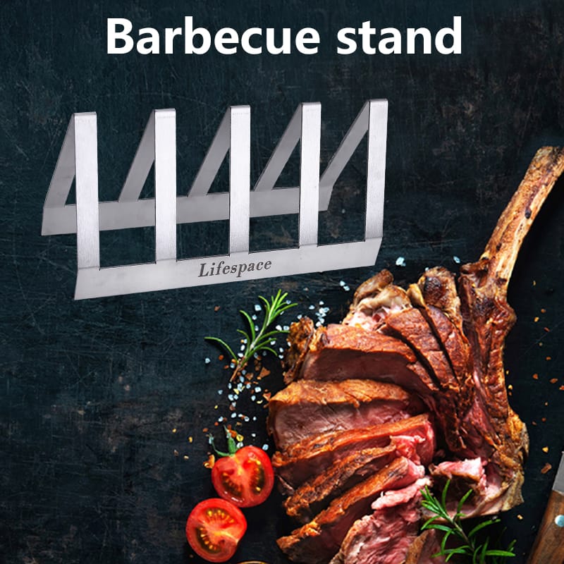 Lifespace Premium Stainless Steel T-Bone / Chop Rack - 4 Slot - 2 pack