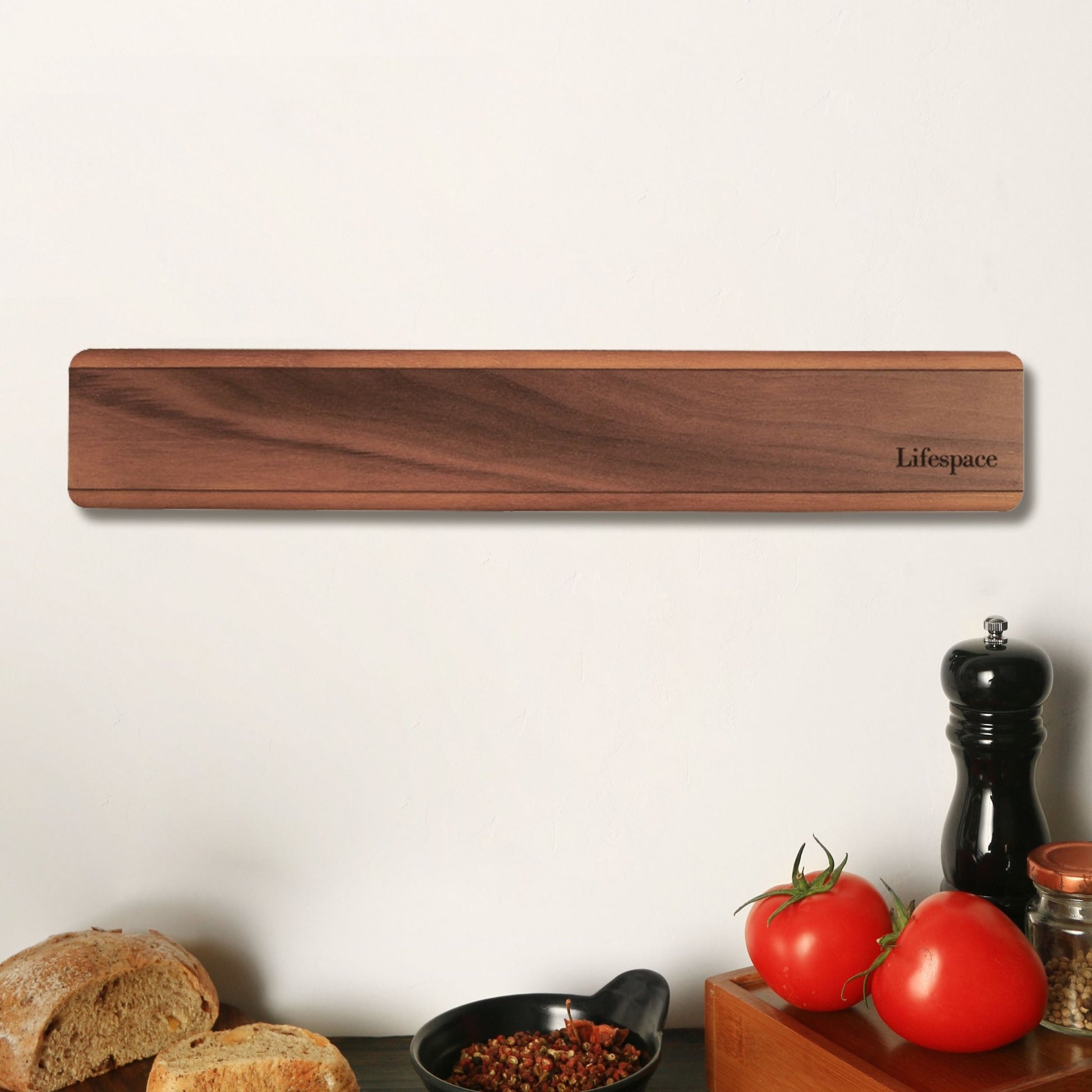 1 x Lifespace Walnut Magnetic Wall Mount Knife Block
