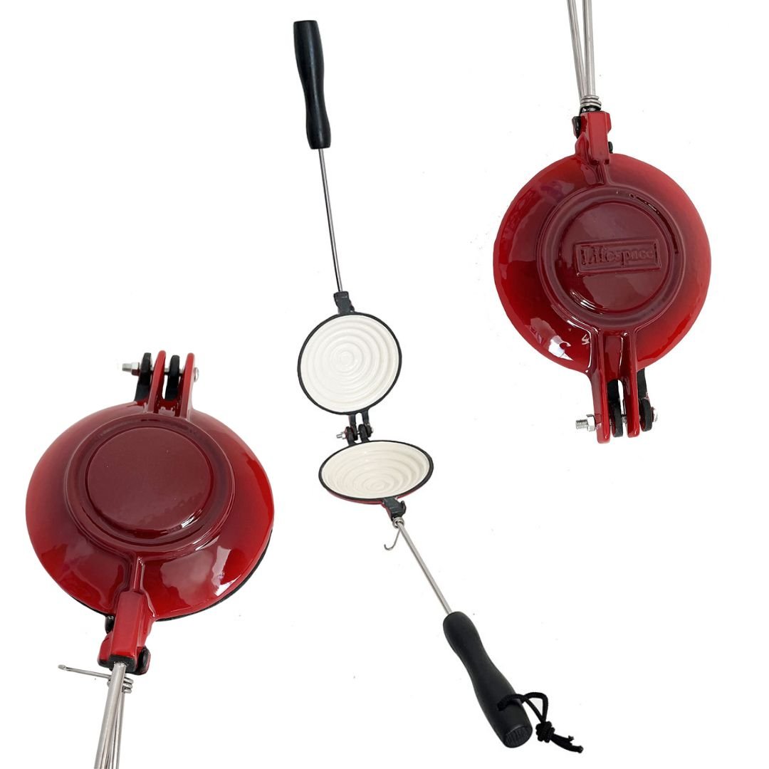 Introducing the Lifespace Red Enamel Cast Iron Jaffle Irons – Your Key to Crafting Perfectly Crispy Pie Sandwiches (Jaffles)!