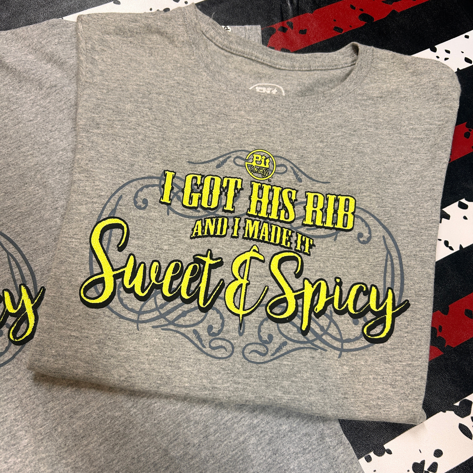 Pit Country Premium Graphic Crewneck Ladies T-Shirt - “I got his rib & I made it sweet & spicy”
