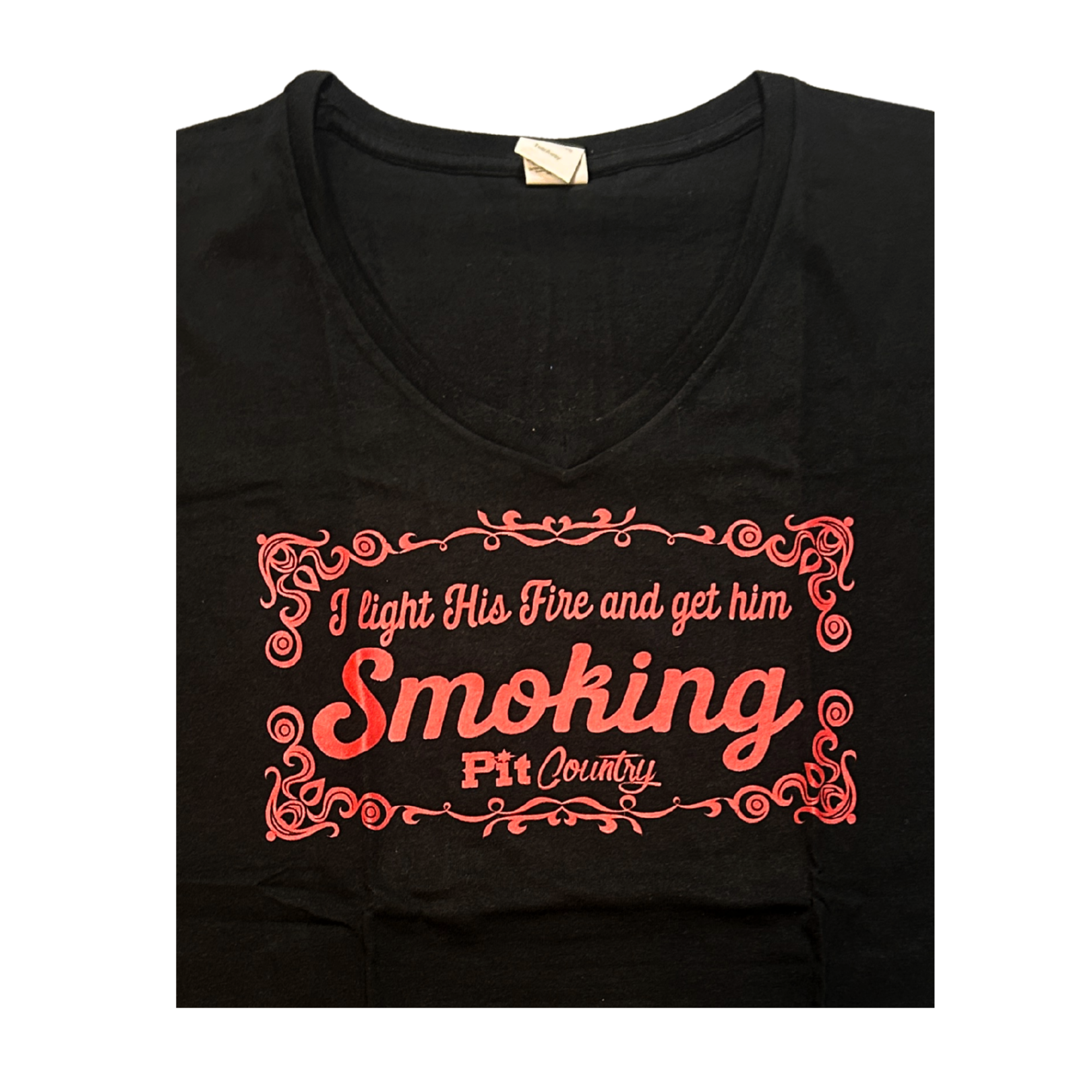 Pit Country Premium Graphic Crewneck Ladies T-Shirt - “I Light His Fire and Get Him Smoking"