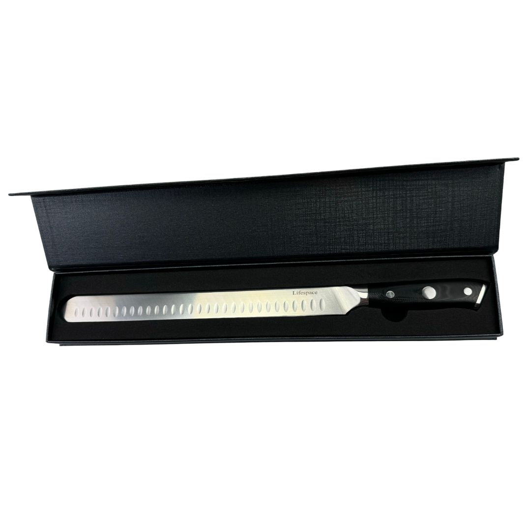 Elevate your culinary skills with the Lifespace Impeccable Brisket Knife – the ultimate tool for precision slicing and carving perfection!